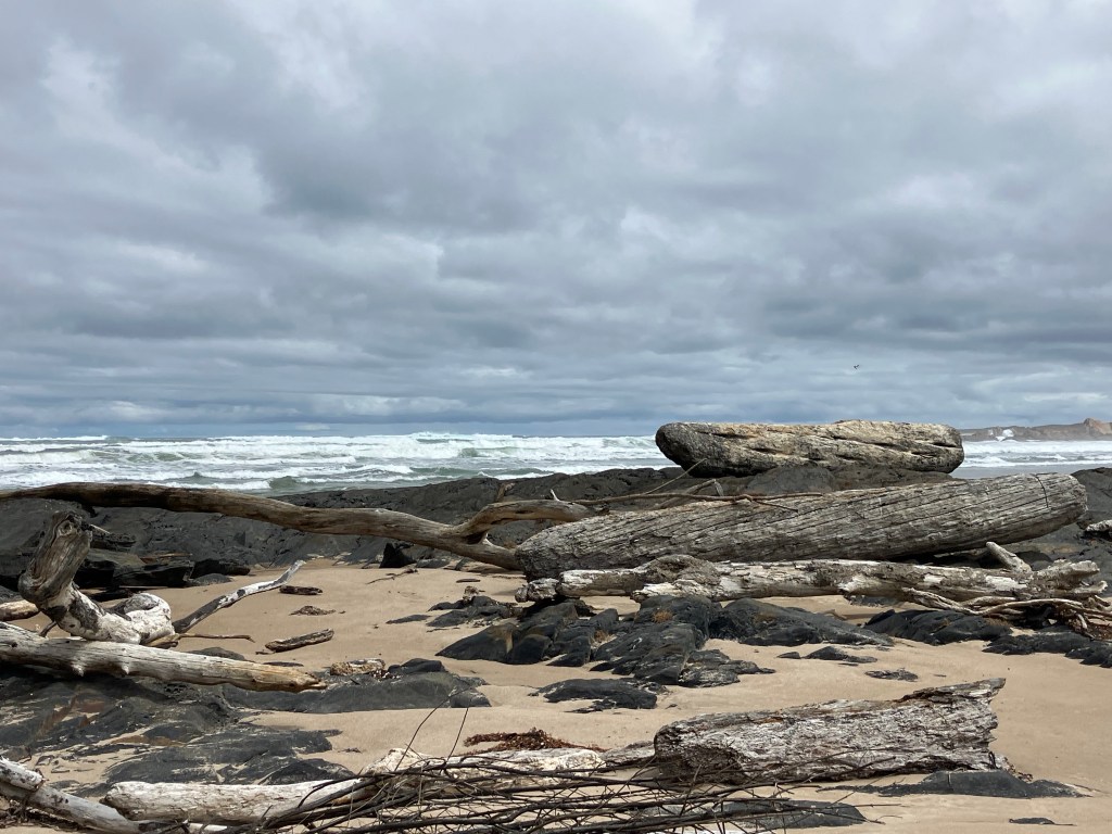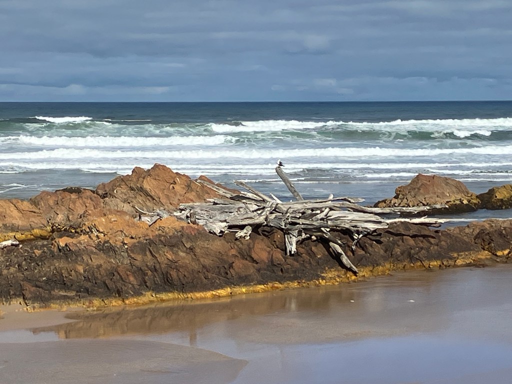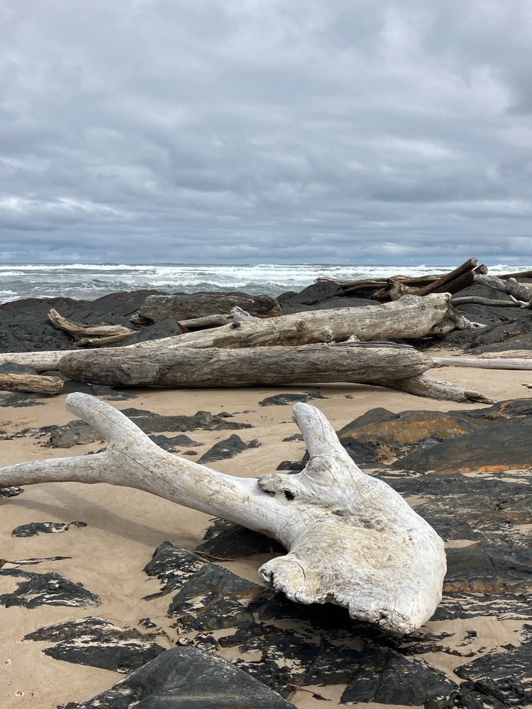 The huge Arthur River reaches the sea here. Making the concept of collecting driftwood reach another level.