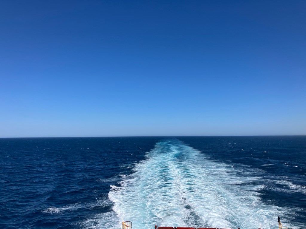 After a gloomy departure the 12 hr ferry journey flew by as the sun came out and it was very hot 🥵 even on deck.